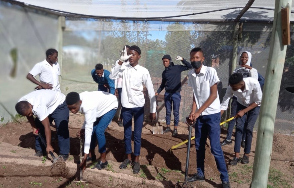 A range of nutritious greens were grown, providing food for the school feeding scheme and hotel and catering lessons. There were watered over the school holidays by community workers.