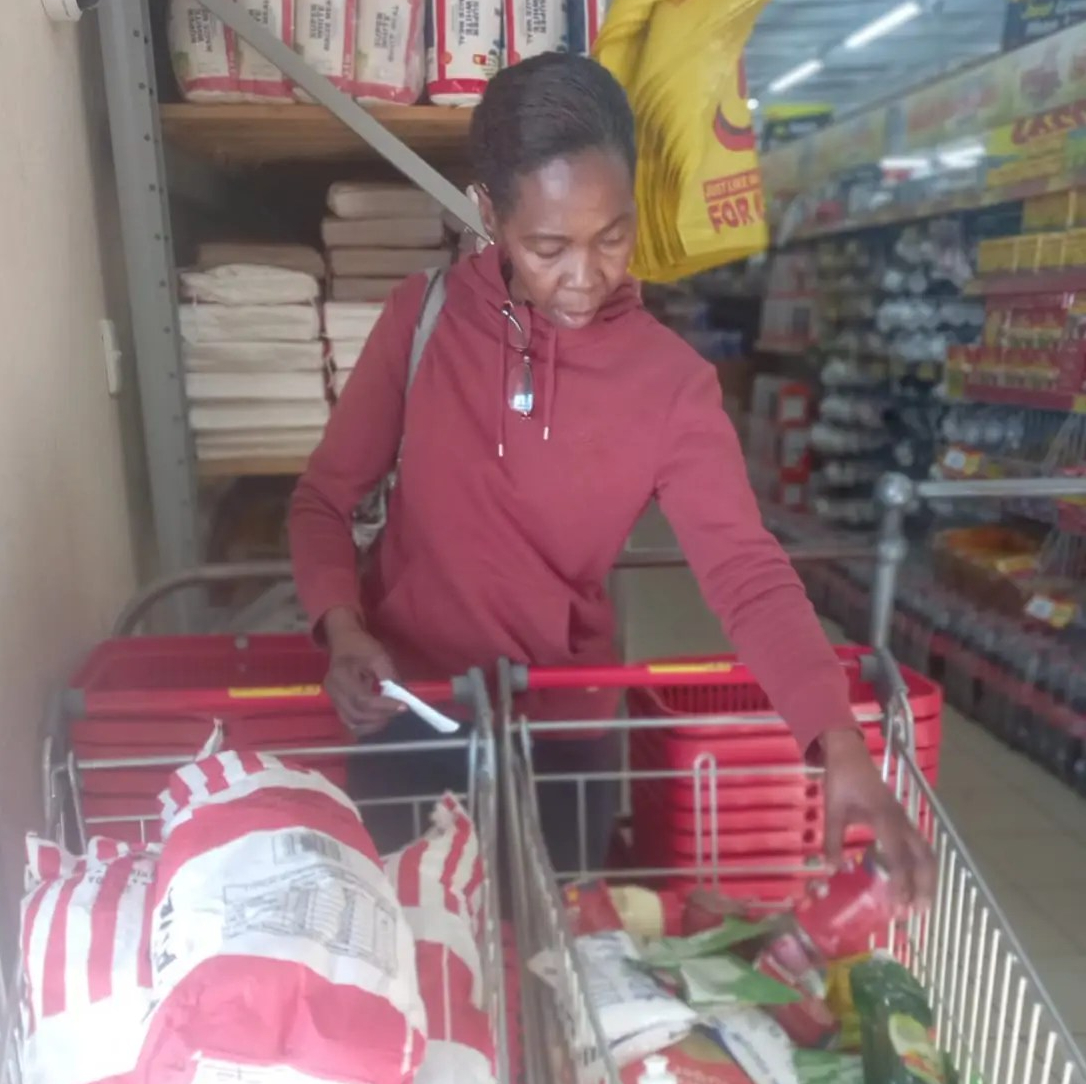 Nursing Sister Grace says: “I managed to buy and distribute food parcels. It was not easy as the local supermarket could only allow me to buy three of each item due to lack of stock.”