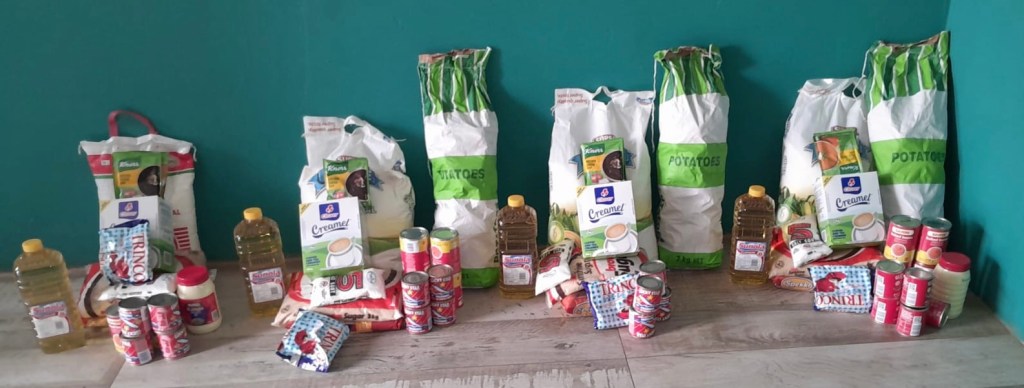 Beneficiaries are identified and assessed according to their needs and challenges. The food parcels currently benefit 31 individuals in 8 family groups. One mother’s dwelling burnt down recently. Others continue to receive monthly food parcels due to unresolved social circumstances. Items are bought from different supermarkets to obtain the best prices.