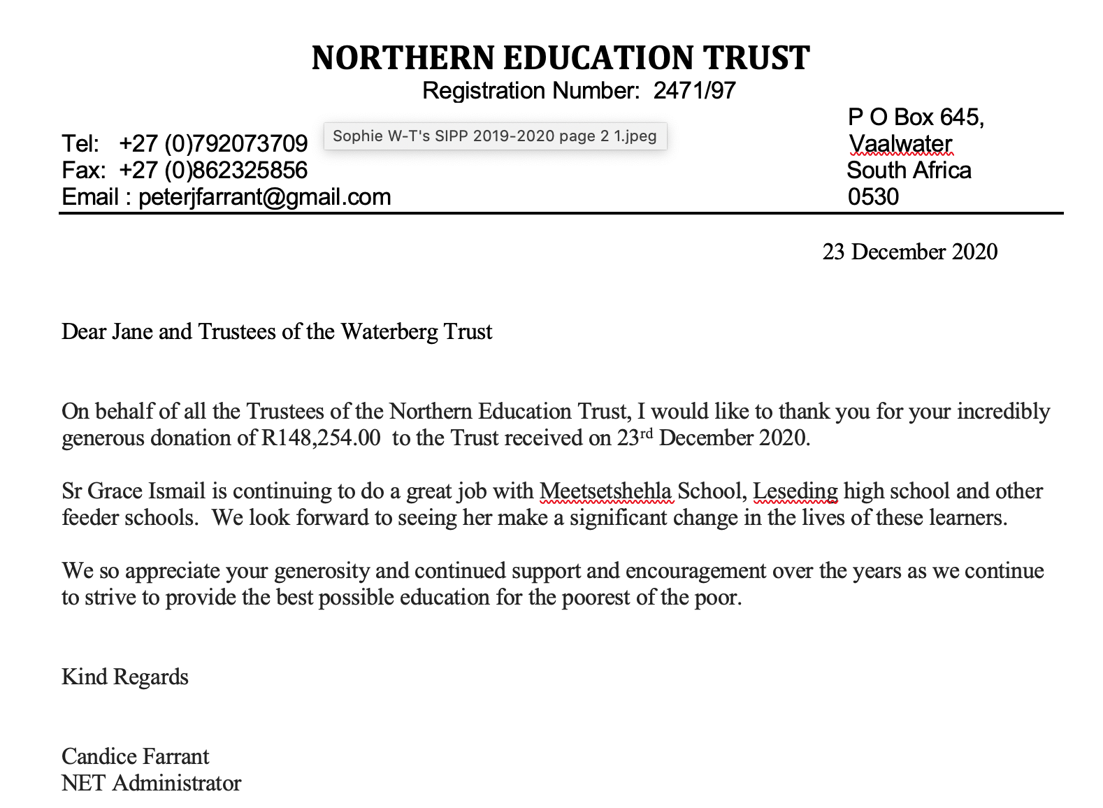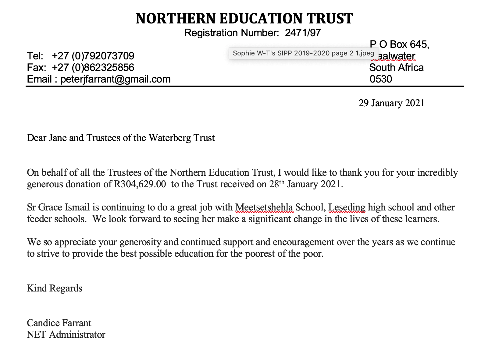 Thanks to our donors, TWT has been able to support amazing projects in the Waterberg: