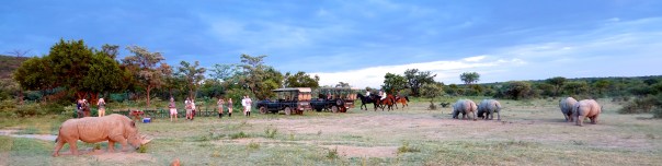~Rhino walking up to riders gathered on the plains at Ant’s Nest~