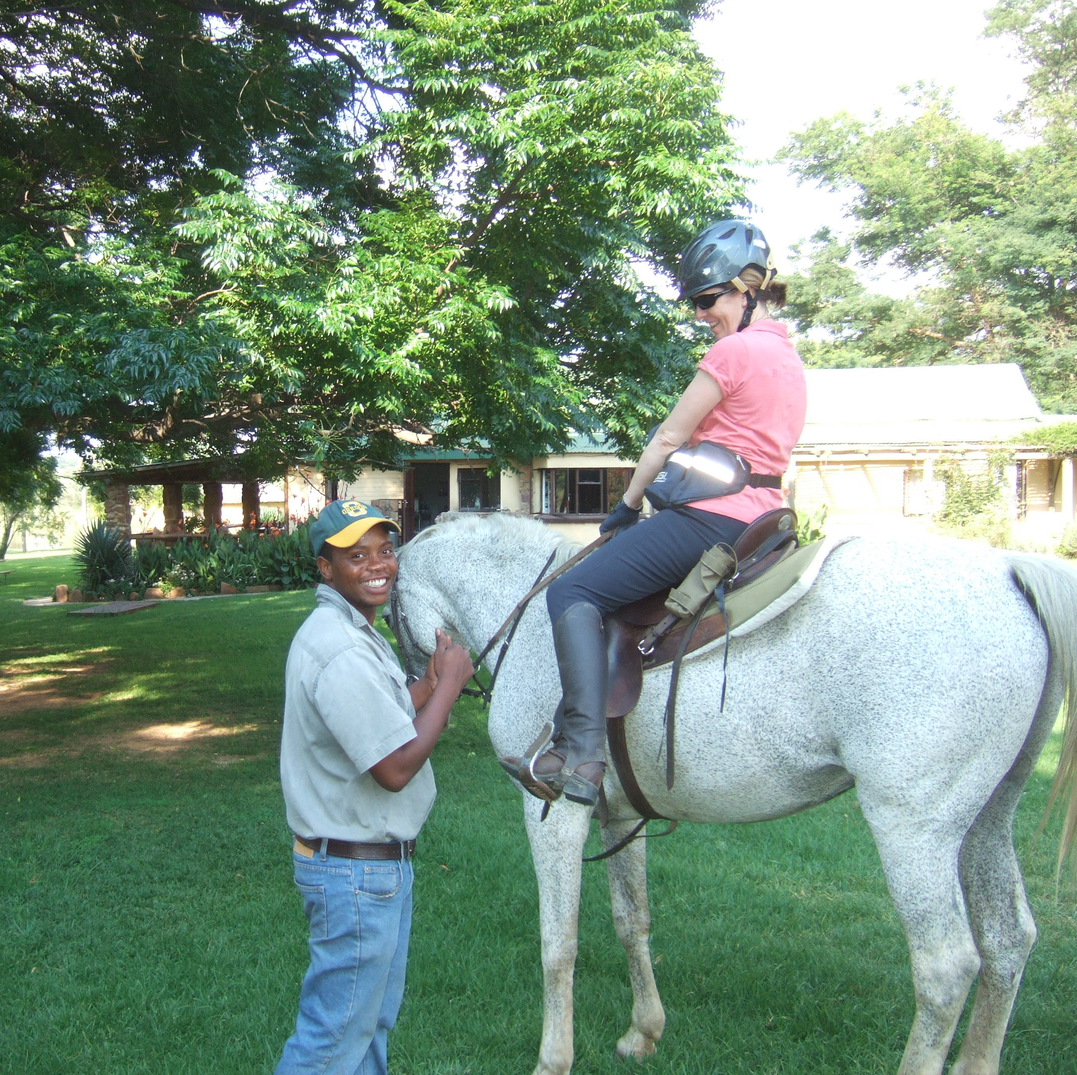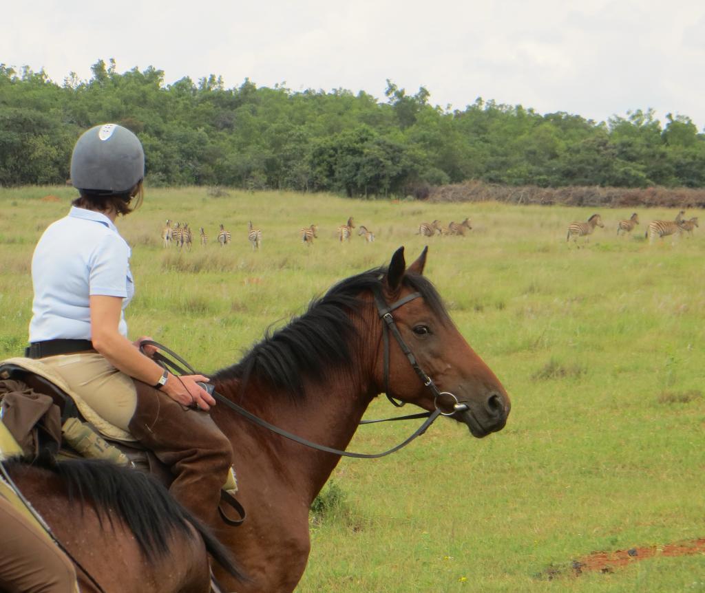 We rode with zebra, wildebeest, giraffe, warthog, jackal, red heartebeest, blesbok, impala, greater kudu, waterbuck, mountain reed buck, duiker, eland, oryx and saw nyala, sable, springbok, baboon, vervet monkey, slender mongoose, tree squirrel, ostrich, hippopotamus, rhinoceros, crocodile and even a debra – the hybrid foal of a zebra mare and donkey stallion.