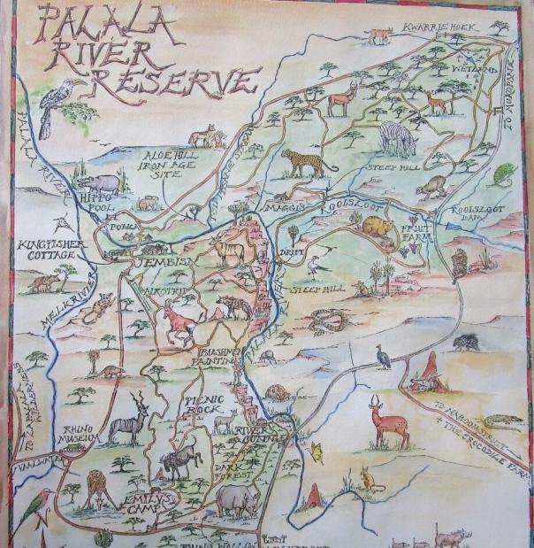 We had entered at the gate just south of Emily’s Camp. Today we reached Kwarriehoek near the road to Makopane, which you can see at the top right-hand corner of this map.
